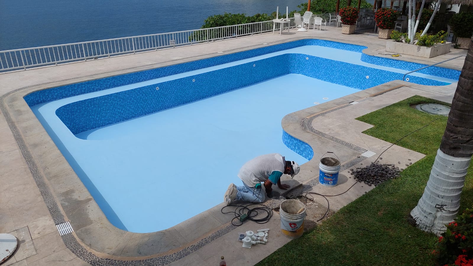 Encontramos una alberca con la geomembrana deteriorada, filtraciones visibles, desgaste estructural y un sistema de circulación ineficiente. Las condiciones no solo afectaban la estética, sino también la funcionalidad y seguridad del espacio.