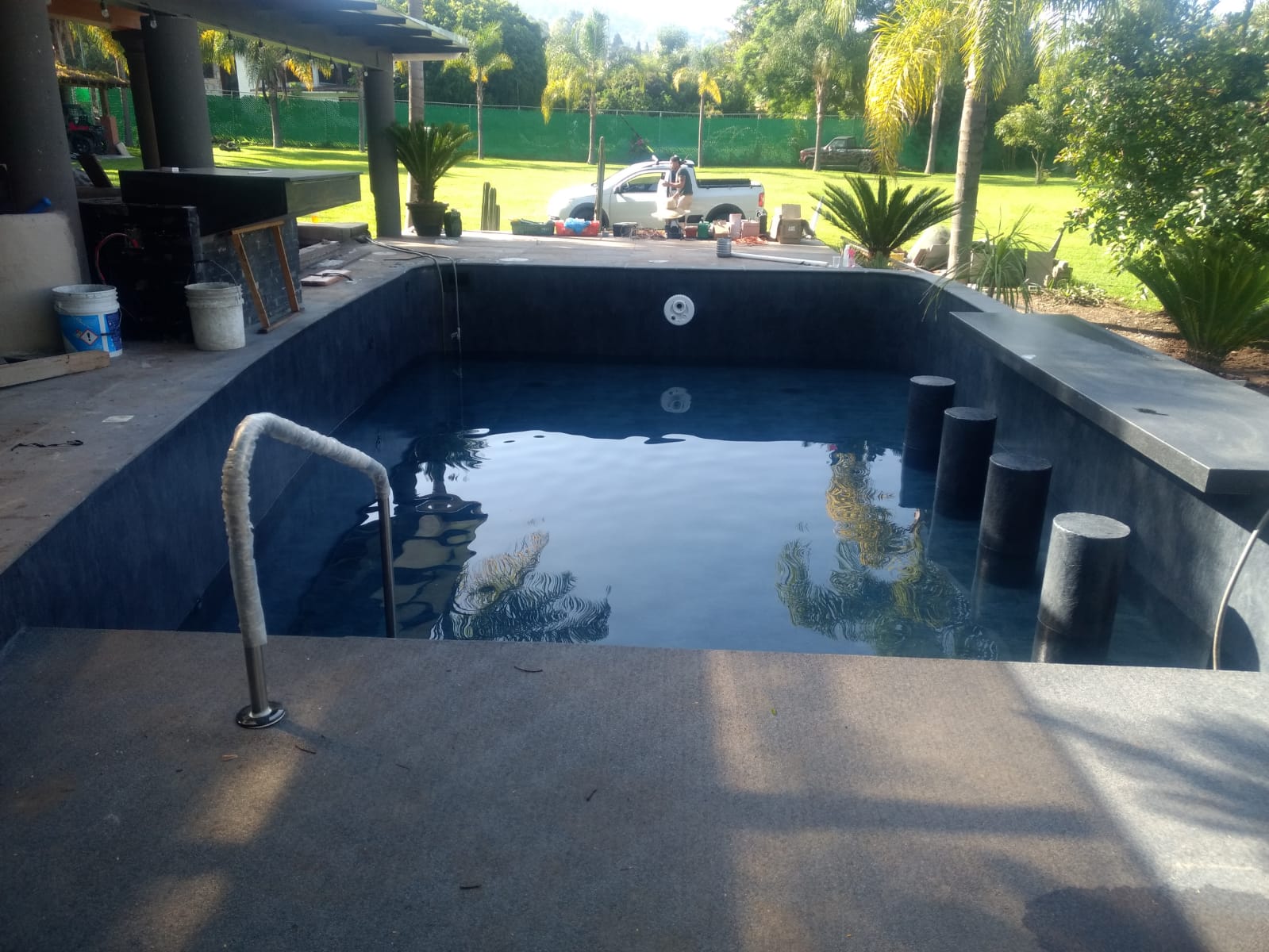 Aplicamos nuestro sistema constructivo exclusivo, instalando una nueva geomembrana de alta durabilidad, mejoramos la hidráulica, sellamos filtraciones y renovamos el acabado completo. El resultado: una alberca completamente transformada, funcional, segura y lista para disfrutarse por muchos años.